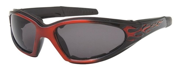 These sunglasses come in an assortment of two tone colored frames with flames going down the sides of both arms.